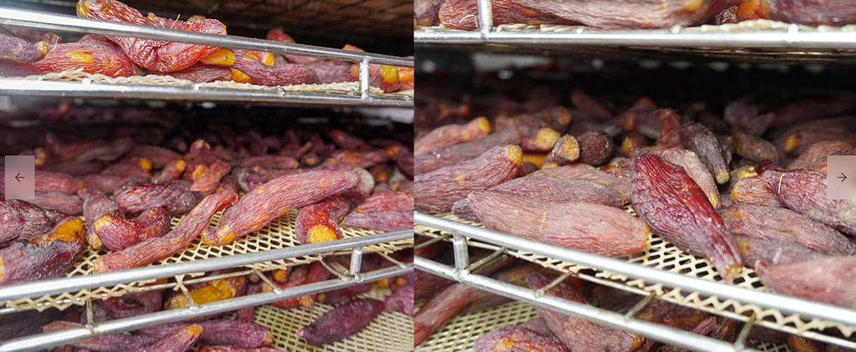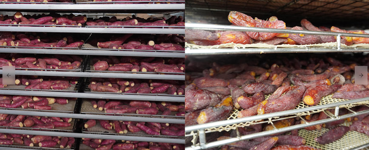 На этой производственной линии мы используем технологию трехкратной обработки паром и трехкратной сушки. Медленное запекание раскрывает вкус. Однократная обработка паром и запекание закрепляет форму, делая молодые сладкие картофелины плотными. Двукратная обработка паром и запекание усиливает сладость, способствуя концентрации сахара. Трехкратная обработка паром и запекание обеспечивает мягкую, клейкую и сладкую текстуру.